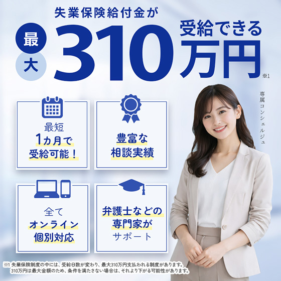 条件を満たすことで、最大310万円の給付金を受け取れる可能性があり、手続きが順調に進めば、最短で1か月以内に給付が開始されるため、生活費や転職活動に必要な費用の心配をすぐに解消することができます。